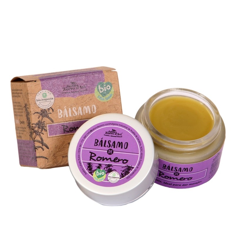 Propiedades. Los principios activos derivados del romero hacen que este bálsamo esté especialmente recomendado para su utilización como relajante muscular, para aliviar dolores de contracturas, articulaciones, etc. Sirve a su vez para dar masajes en cualquier parte del cuerpo.