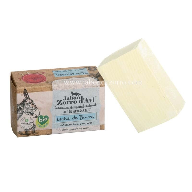 Elaboración. Jabón artesanal natural elaborado con aceite de oliva ecológico de calidad superior obtenido únicamente mediante procedimientos mecánicos y leche de burra cruda procedente de la protectora Asociación Nacional de Criadores de la Raza Asnal Zamorano-Leonesa (Aszal) cuyo objetivo radica en velar por la conservación, mejora y promoción de dicha raza de burros en peligro de extinción (Donkey Milk). Jabón libre de parabenos, colorantes, conservantes y aromatizantes. Exento de aceites minerales derivados del petróleo. Producto biodegradable respetuoso con el medio ambiente. No testado en animales.