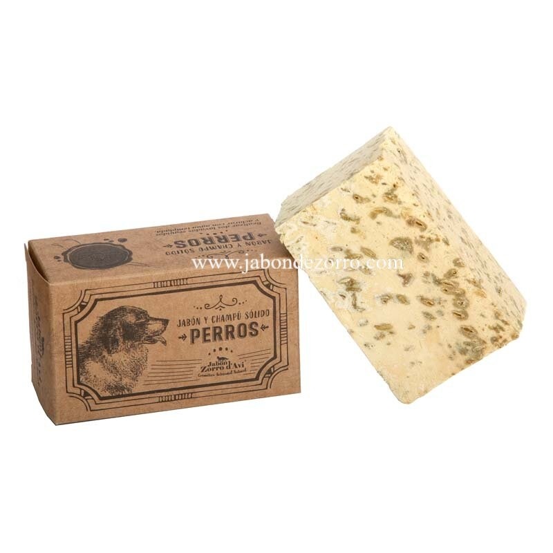 Propiedades. Jabón y champú sólido ideal para el cuidado e higiene de tus mascotas, la combinación de plantas ayudan a calmar el picor, la descamación y rojeces de la piel aportando un brillo total al pelo. El árbol de té actúa como antiséptico y repelente natural.