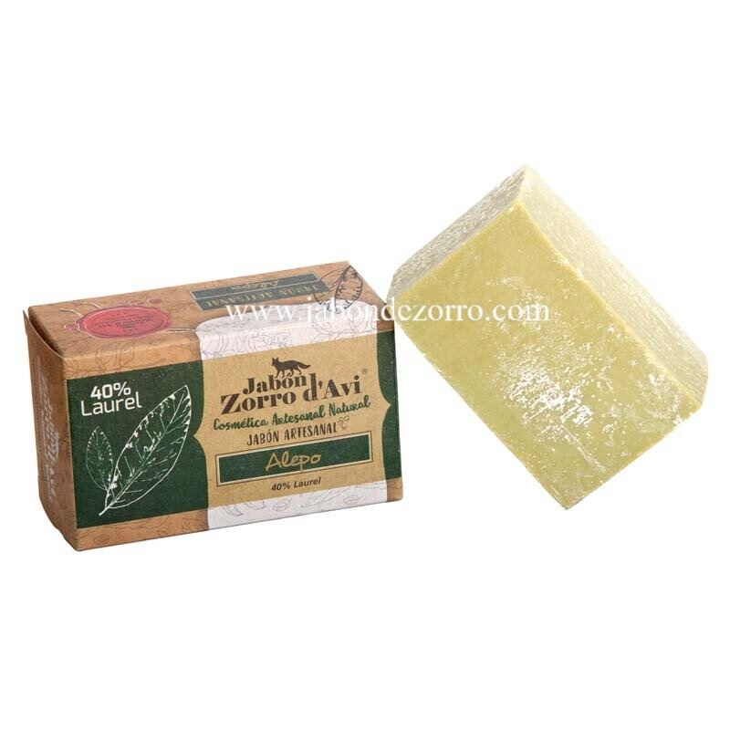 Modo de empleo. Aplicar jabón alepo mediante un suave masaje tras haber sacado previamente espuma con las manos en el caso de usarlo para el rostro; para cuerpo y cabello (aplicando dos lavados seguidos) se utilizará siempre directamente con la propia pastilla. Dejar actuar dos minutos sobre la piel, y aclarar con abundante agua.