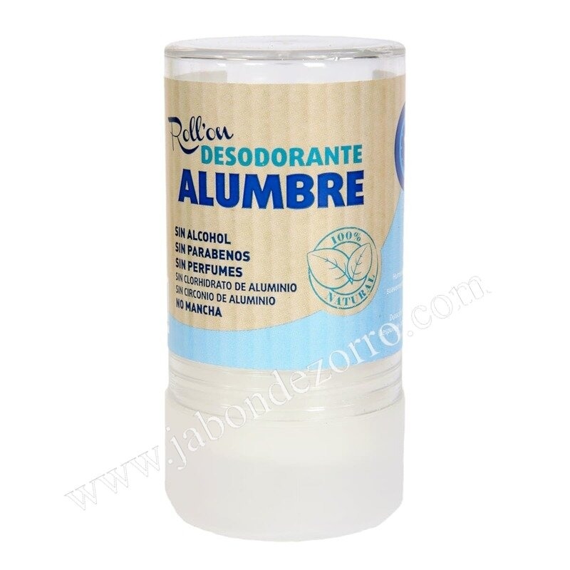 Propiedades. Constituye un extraordinario desodorante natural debido a que la carga iónica negativa de alumbre de potasio y su característica composición molecular impide que pueda ser absorbido por la piel. Impide de forma natural la formación de las bacterias que provocan el olor corporal, a diferencia de los desodorantes convencionales compuestos por clorhidrato de aluminio o circonio de aluminio que sí son absorbidos por la piel evitando la transpiración y obstruyendo los poros.