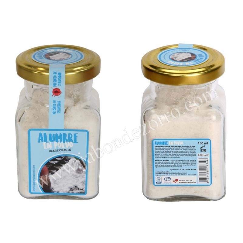 El Alumbre es un mineral natural compuesto a base Potassium-Alum K Al3 (OH)6 (SO4)2. El Alumbre en polvo, es el mineral tal y como se extrae de la naturaleza sometido únicamente a un proceso de machacado manual.